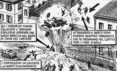 Quella A112 in sosta che l’uomo scorge a pochi metri è una potente autobomba che cela al suo interno dodici kg di polvere nera. Una possente deflagrazione e l’esplosivo squarcia come carta stagnola un solido muro di cinta. L’edificio violato è la sezione femminile della casa circondariale: il carcere di Rovigo, sulle cui mura è stato appena aperto un varco.