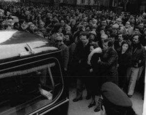 Uno dei commensali che stava al tavolo con la Bianchi e il gioielliere, fugge terrorizzato verso l’uscita: arriva alla porta del locale, ma quando forse pensa di aver guadagnato la salvezza viene fulminato da una scarica di colpi partiti da un terzo complice appostato all’esterno del ristorante a far da palo.