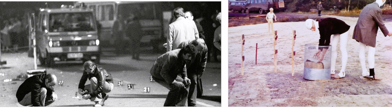 Raccolta dei reperti (s.) e ricostruzione dei periti esplosivisti (d.): tutte le prove raccolte sono state eliminate in silenzio su disposizione della Procura generale nel 1997