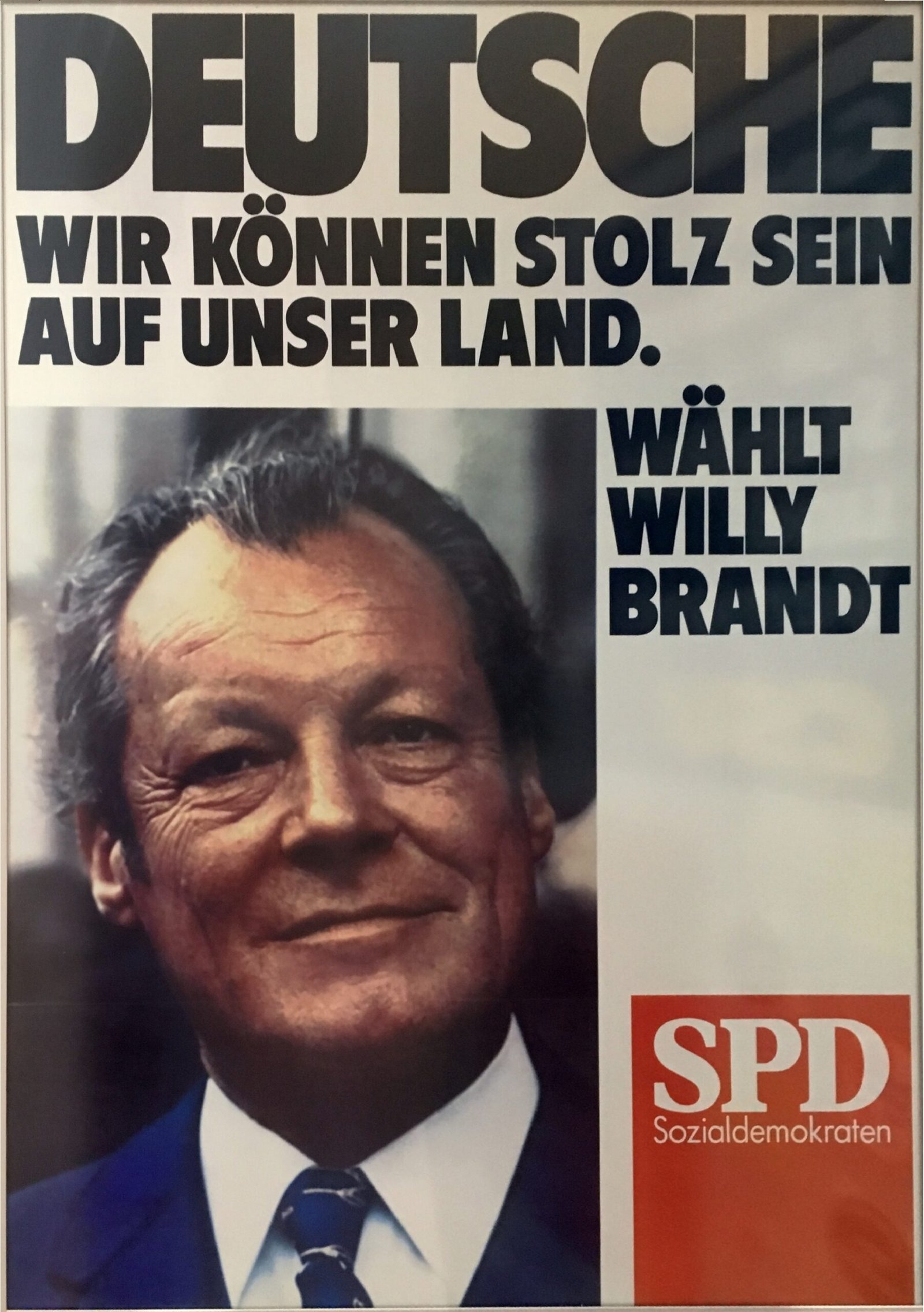 Manifesto elettorale SPD del 1972. Si legge: «Tedeschi, possiamo essere orgogliosi del nostro Paese. Votate Willy Brandt»