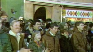 L’enorme dispiegamento di risorse di ogni genere per controllare la situazione non bastò comunque ad impedire che un signore di nome Hans Camin riuscisse a farsi largo nella calca fino a raggiungere un giornalista e dare fiato davanti alle telecamere al proprio desiderio che tutti i tedeschi potessero viaggiare liberamente fra le due Germanie. Evidentemente, ci si era preparati anche a questa eventualità, perché immediatamente intervenne un altro fra i presenti a contraddire il concittadino, non era vero che non si poteva viaggiare, contestò, mentre altri sullo sfondo si misero a parlare l’uno sull’altro, una tattica studiata per catturare l’attenzione facendo muro contro il guastafeste, per non consentirgli di riprendere la parola.