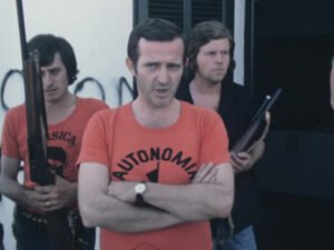 Simeoni, alla testa di alcuni uomini armati, durante i fatti di Aleria dell’agosto 1975