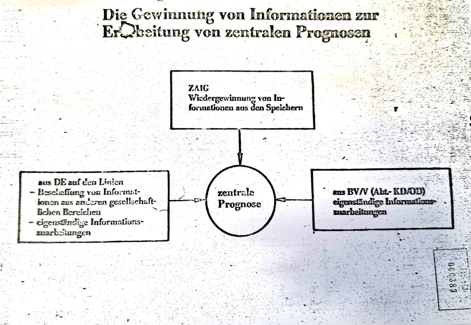 Al posto di un sistema di comunicazione interna rigidamente gerarchico, ne prese forma uno di flussi informativi in continuo movimento fra le «linee», cioè fra le strutture e fra i diversi livelli amministrativi dell’organizzazione. Raccogliendo i risultati di uno studio realizzato dal colonnello Schwock sulla determinazione algoritmica del fabbisogno informativo, lo ZAIG si incaricò di presentare alle strutture periferiche dell’apparato piani annuali del loro fabbisogno informativo specifico per orientare la raccolta impiegando in maniera mirata le risorse operative e istruendo gli informatori. Con questi piani i capi di tutti gli uffici potevano precisare i loro obiettivi informativi e sviluppare relativi piani di lavoro. Ciò rispondeva alla visione di Irmler maturata nella sua tesi di dottorato del 1970, intitolata Sviluppo qualificato dell’attività prognostica come componente del sistema di comando e direzione scientifica del Ministero per la Sicurezza di Stato.