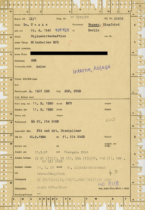 Dal suo fascicolo personale risulta essere stato addestrato nel marzo- aprile 1953 come ufficiale per gli interrogatori, ma si occupò principalmente di attività amministrativa e di supervisione delle indagini. In quella posizione, unitamente alla sua passione per la gestione dell’ecosistema forestale, cominciò a interessarsi per il funzionamento del sistema di gestione delle informazioni dell’apparato di sicurezza, di cui riconobbe presto tutti i limiti e i gravi deficit. I problemi della Stasi, lamentati dall’autorità politica negli anni Cinquanta, gli permisero di fare carriera come ufficiale, mentre procedeva di pari passo il suo impegno attivo nelle articolazioni del Partito.