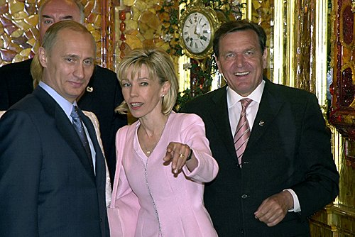 Gerhard Schröder e sua moglie, Doris Schröder-Köpf, nel 2003, durante un incontro con il presidente russo Vladimir Putin