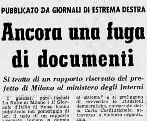 «I giornali para-fascisti La Notte di Milano e Il Giornale d’Italia di Roma hanno pubblicato nel pomeriggio di ieri il testo di un rapporto riservato inviato in doppia busta dal prefetto di Milano, Libero Mazza, al ministero degli Interni in data 22 dicembre 1970. Appare veramente incredibile che un documento così delicato e riservato possa essere ora nelle mani dei giornali dell’estrema destra. […] Il compagno Scalfari chiede di “conoscere per quali vie il giornale parafascista ‘La Notte’ è venuto in possesso di tale rapporto riservato” e “quale sia il giudizio del ministro dell’Interno sul contenuto del predetto documento e sulle proposte ivi formulate”. Infine Scalfari chiede di sapere “se il prefetto Mazza abbia mai inviato al ministero dell’Interno analoghi rapporti contenenti analoghe proposte con riferimento ai movimenti sovversivi fascisti, alle formazioni paramilitari squadristiche che per mesi hanno infestato il centro di Milano a pochi metri dal palazzo della prefettura, come risulta da innumerevoli denunce di associazione, di parlamentari, di singoli cittadini e dello stesso sindaco della città”» (Avanti!, 17 aprile 1971)