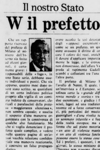 «Il prefetto è uno sciocco che non capisce quanto accade o un fazioso che non vuol capire. Milano merita un prefetto della Repubblica, non un portavoce della cosiddetta “maggioranza silenziosa” che poi non è altro che una querula minoranza» (Eugenio Scalfari, allora deputato del Psi, su La Stampa del 18 aprile 1971)