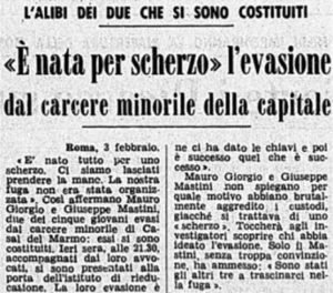 Ritaglio del Corriere della Sera sull’evasione da Casal del Marmo di Mastini e Giorgio nel febbraio 1976