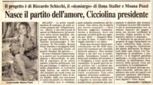 L’Italia di oggi non è certamente migliore di quella degli anni Ottanta quando Cicciolina veniva eletta nelle file dei Radicali o fondava – con Moana – il cosiddetto partito dell’Amore. La Staller fu capace di prendere 20 mila preferenze nel 1987, e di essere seconda – per numero di voti – al solo Pannella. La candidatura non fu frutto del caso ma, come spiegò la stessa pornostar durante uno dei fili diretti organizzati da Radio Radicale, il risultato di una «affinità elettiva»: i radicali venivano definiti «trasgressivi» e capaci, nonostante l’esiguo numero, di farsi portatori di tesi rivoluzionarie, eversive, in un’Italia ancora terribilmente bigotta e ipocrita come quella degli anni 70/80.