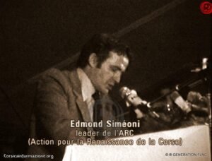 Una credibilità consacrata dalle lotte contro lo zuccheraggio del vino da parte dei pieds noir, ex coloni franco-algerini tornati in Corsica dopo la perdita della colonia, e dalla pubblicazione, nel luglio 1974, di «Autonomia», un foglio che raggiunse la tiratura di ventimila copie e sancì il cambio di passo dell’ARC. Negli articoli si parlava della colonizzazione della Corsica a opera della Francia attraverso i piani agricoli e turistici. Parigi era colpevole della regressione culturale che soffocava l’isola. Nel marzo 1975, su «Arritti!», l’ARC parlava chiaramente di nazionalismo corso. Fermenti politici di cui Simeoni e il suo gruppo erano il volto più riconoscibile, ma anche più moderato. Nascevano formazioni para terroristiche come la Ghjuventù Paolina, avversaria del movimento di Simeoni e incline all’uso di esplosivi.