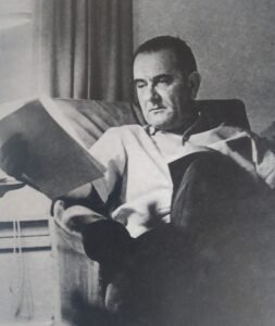 «E’ il più complicato degli uomini», spiega con dolcezza Lady bird, sua moglie, «e talvolta è davvero un ragazzo triste». Ma Johnson riacquista l’allegria ogni volta che può rifugiarsi nel suo ranch presso Johnson city, dove la bandiera stellata sventola su una piscina che la forma del Texas e dove nei ricevimenti si servono hamburgers sagomati anch’essi come il Texas, dove c’è un telefono persino nel giardino, sistemato nel tronco di un albero e dappertutto campeggia la fatidica sigla L.B.J., emblema della famiglia. Lyndon Johnson poi tiene molto all’eleganza dei suoi abiti. Si dice di lui che preferirebbe morire piuttosto di farsi sorprendere con addosso un vestito che costi meno di duecento dollari. Nel 1955, quando ebbe un serio attacco cardiaco, sentì intorno al letto qualcuno che parlava di annullare l’ordinazione di due vestiti, uno blu e l’altro marrone, a un sarto di Sant’Antonio. Johnson al quale i medici avevano dato cinquanta probabilità su cento di salvezza, riuscì a borbottare: «Ditegli di andare avanti col vestito blu: potremo usarlo qualsiasi cosa accada».