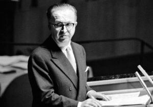 Giuseppe Pella alle Nazioni Unite nel 1959 da ministro degli Esteri (fonte)