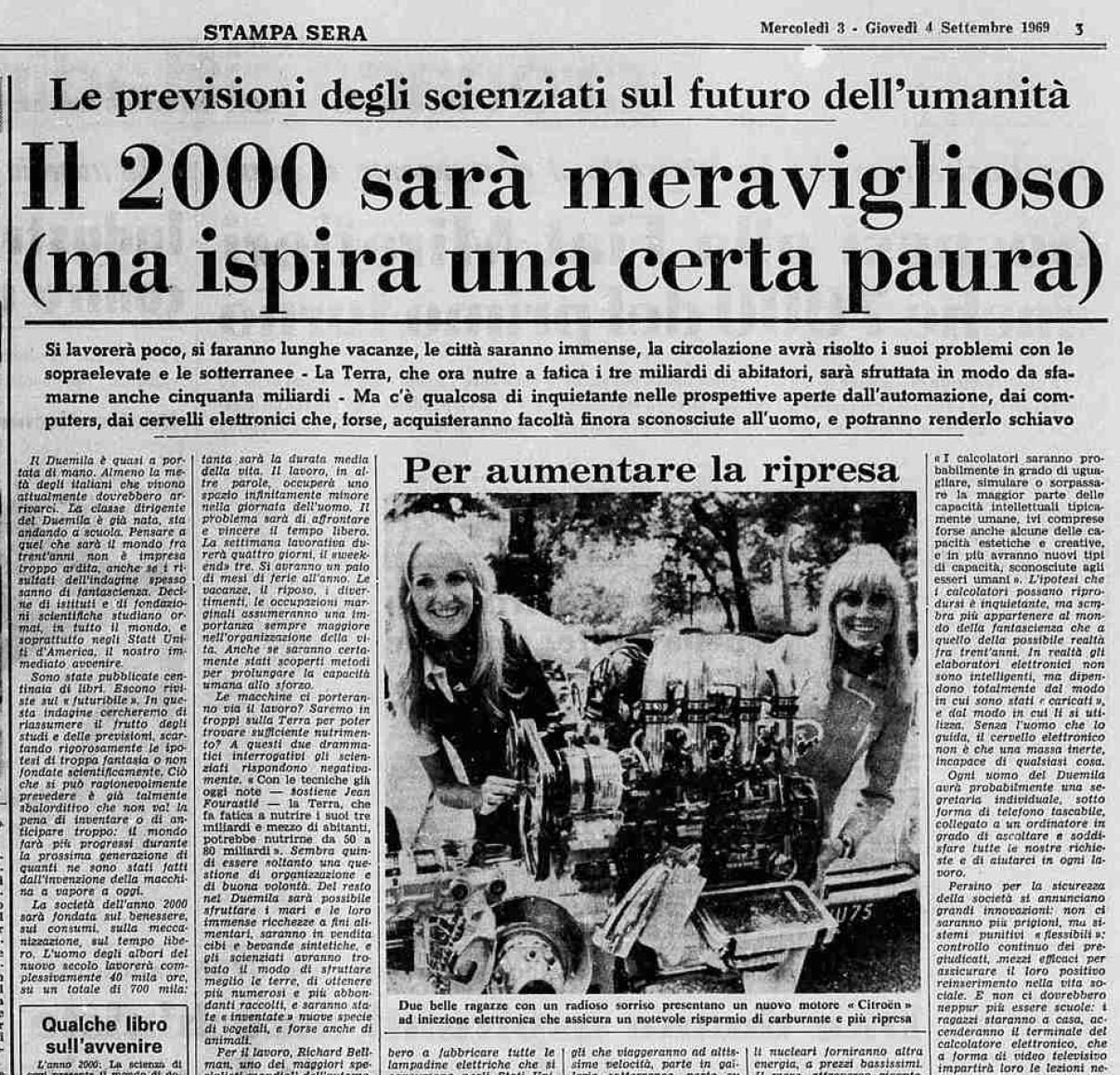Riportiamo di seguito alcuni stralci da articoli sul futuro comparsi su quotidiani pubblicati tra il 1969 e il 1981, senza ovviamente omettere le “predizioni” meno riuscite.